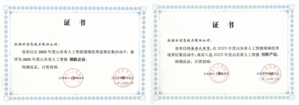 浪潮集团所属浪潮云获山东省人工智能领域两项荣誉