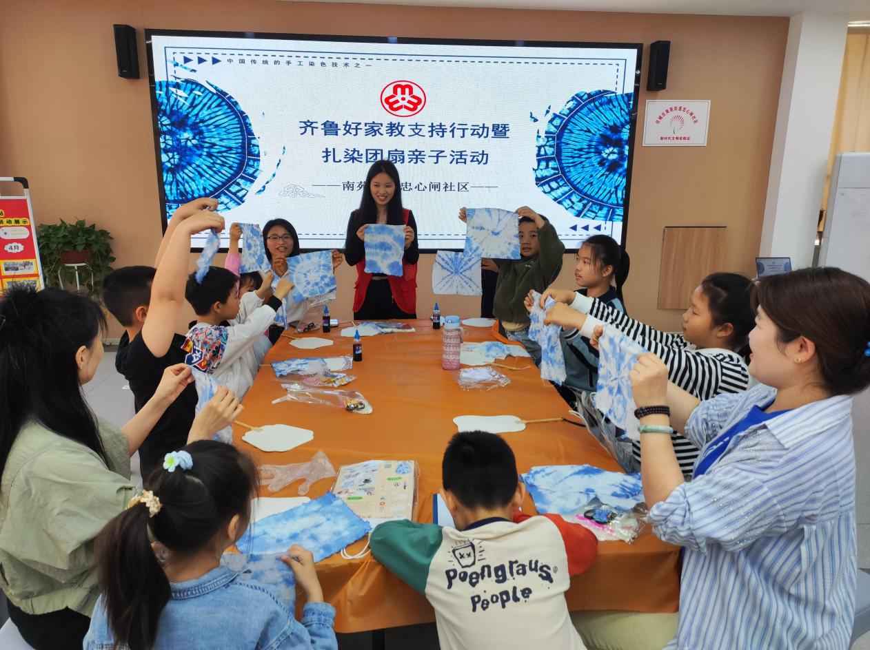 为推进“齐鲁好家教支持行动”,传承传统文化,搭建亲子互动平台,近日,南苑街道忠心闸社区妇联组织亲子家庭开展扎染团扇手工活动。