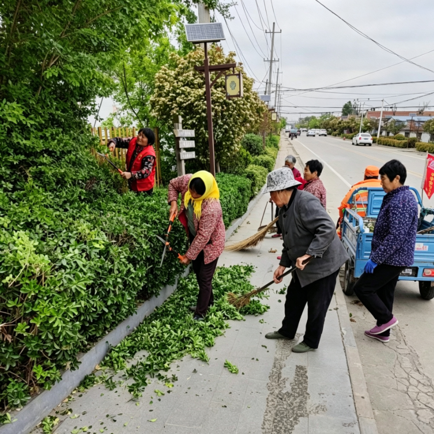 活动中,大家手持修枝剪、绿篱机等工具,对主干道、文化广场及房前屋后的绿植进行规范修剪,及时清理枯枝、杂枝和修剪后的枝叶垃圾,做到修剪到位、清理彻底。经过整治,村内绿植整齐美观、层次分明,村庄环境更加清爽整洁,有效改善了人居环境,提升了村民生活舒适度。