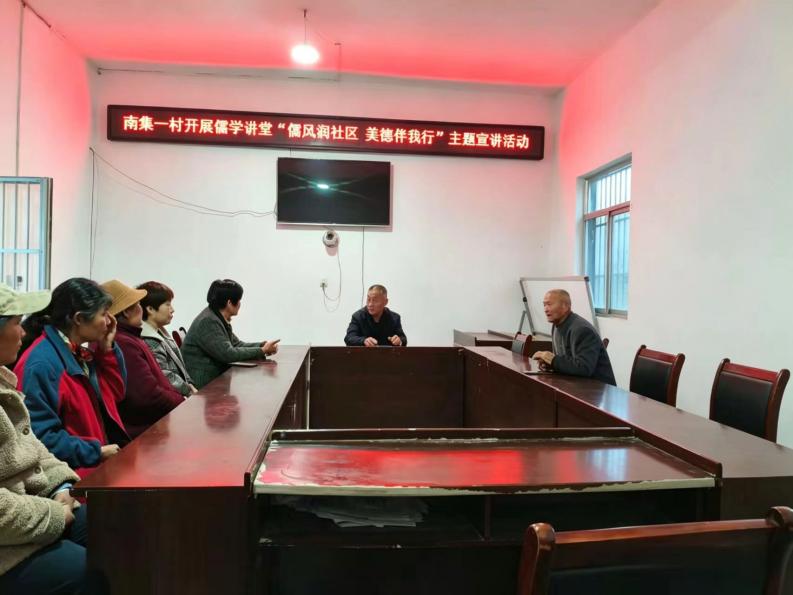 为传承中华优秀传统文化,弘扬传统美德,涵养文明乡风,丰富村民精神文化生活,4月22日,济宁高新区接庄街道南集一村开展儒学讲堂“儒风润社区 美德伴我行”主题宣讲活动。
