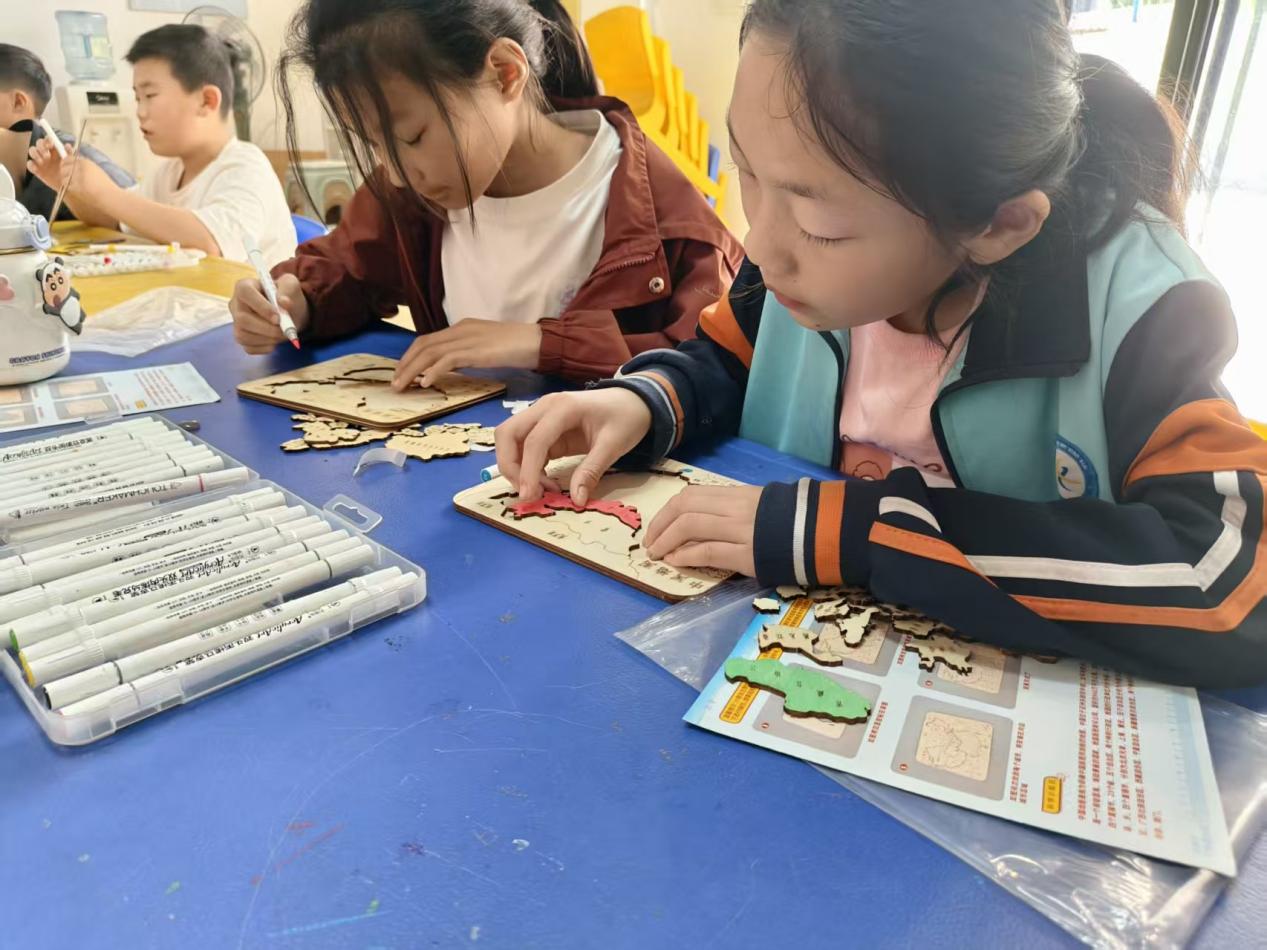 动手实践环节中,社工为孩子们逐一分发中国地图拼图,孩子们迅速投入状态,全神贯注地比对拼图轮廓、辨认省份位置,不时互相交流技巧、彼此协助配合。在一双双小手的细致操作下,零散的拼图碎片逐步拼接完整,一幅完整的中国版图缓缓呈现。拼装过程中,孩子们不仅熟练掌握了祖国的疆域轮廓、省份分布,更深刻领悟到国家领土完整的重要意义,将“国土安全”的理念深深根植于心,切实把守护国家安全的责任意识转化为具体行动。