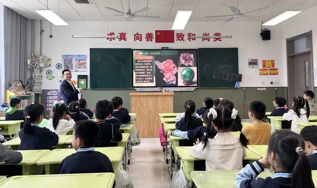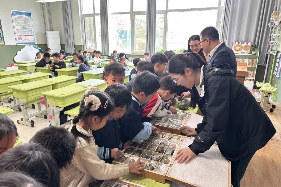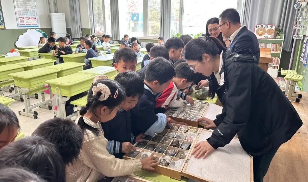 本次活动以趣味科普和实物体验为主要形式,志愿者团队针对不同学段学生特点,量身定制分层科普内容。活动中,志愿者运用通俗生动的语言、多媒体演示与互动小游戏,深入浅出地讲解地球演化、岩石矿物成因、生态环境保护等地学知识,并通过互动问答引导孩子们认识地球、敬畏自然,在寓教于乐中播撒科学种子,厚植环保理念。