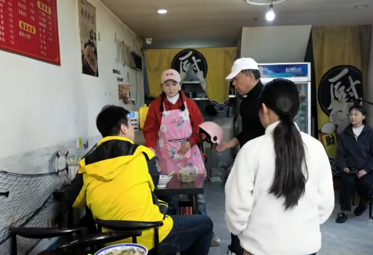 张泽川:这部电影表面上讲的是外卖骑手和一个馄饨摊的故事,但本质上讲的是“人与人之间的连接”,核心主题是权利与责任。在快节奏的城市生活中,人与人之间其实越来越疏离,但恰恰是在这些街头场景里,你会看到最直接的交流、最真实的情感。我希望通过这个故事,让大家重新看到——生活不只是效率和结果,还有温度,还有彼此之间的理解。你有权利经营,但不要忘记社会责任,这也是我在开机仪式上就强调的,影片中每个人物都面临着各自的焦虑和困难,但都在追问责任的意义——对家庭的责任,对良心的责任,对这个社会的责任。
