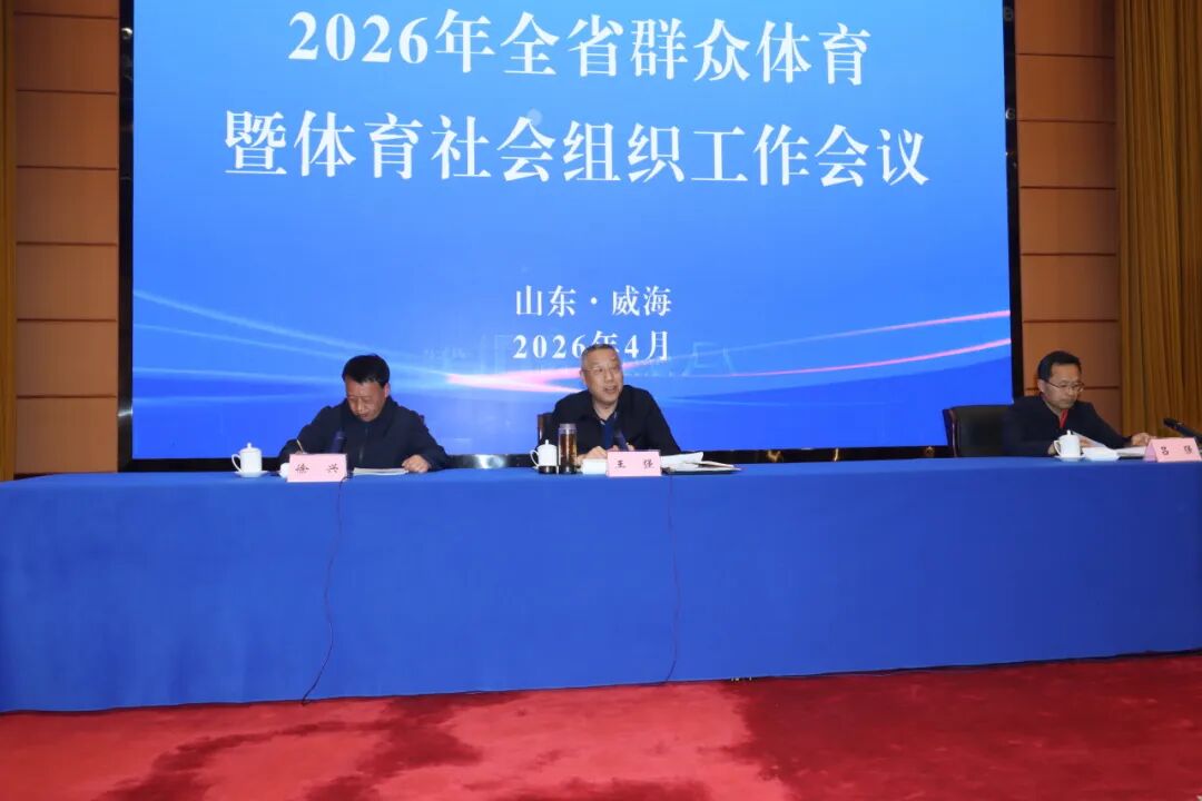 4月21日,2026 年全省群众体育暨体育社会组织工作会议在威海召开。会议全面总结 “十四五” 及2025年全省群众体育和体育总会工作成效,分析当前发展形势,明确 “十五五”工作思路,部署2026年重点任务,动员全省体育系统加快构建更高水平全民健身公共服务体系,为体育强省建设筑牢根基。