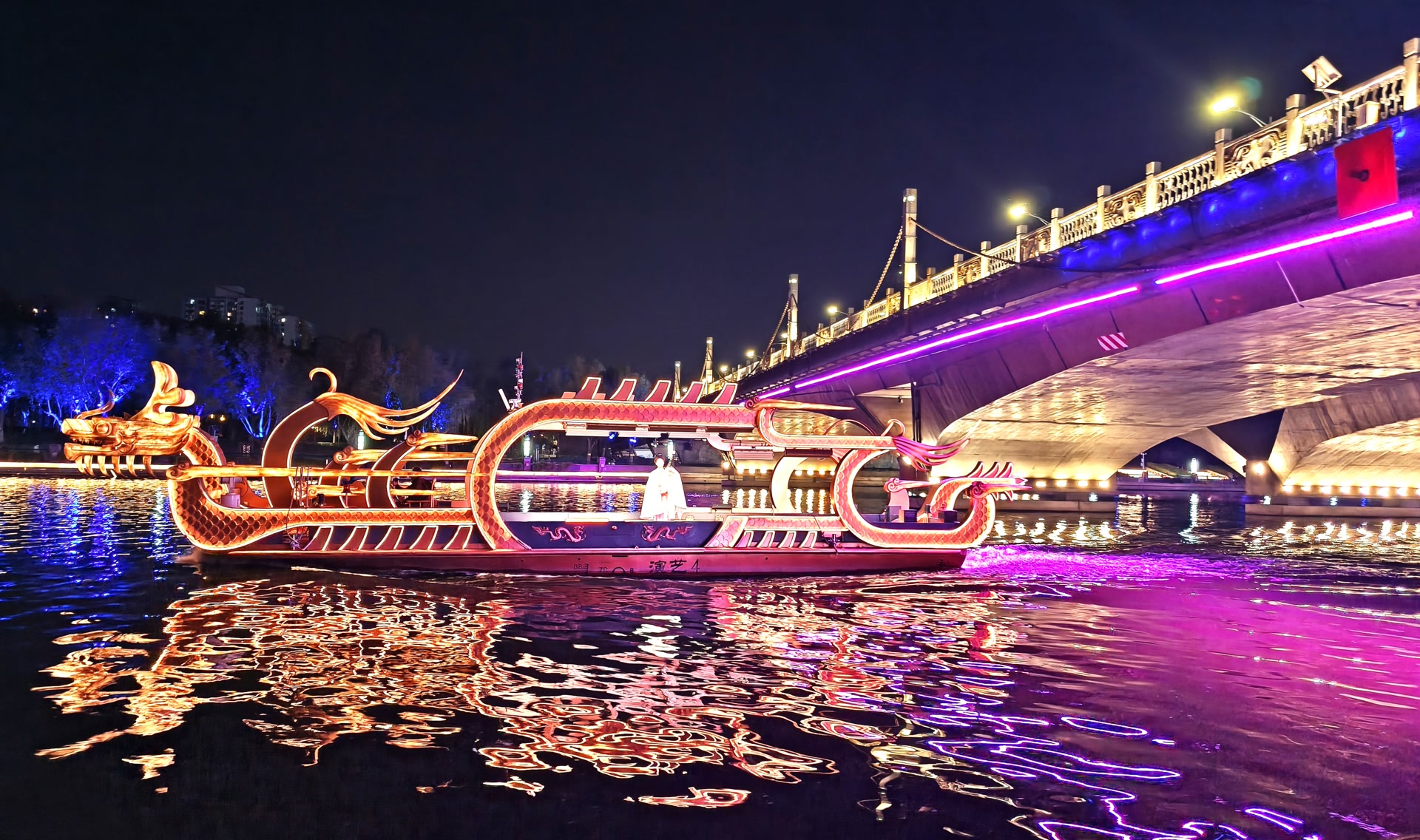 “这是北京首个沉浸式移动水上剧场。”通州区交通委客运管理科负责人金海旺站在岸边说,为保障夜航安全,交通部门对所有船舶进行了专项夜航灯光检验,演出期间将对水域实施临时管控,“救援艇随船保障,确保万无一失”。