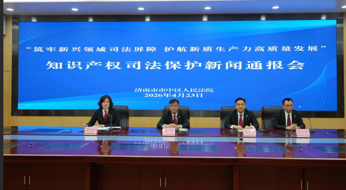 4月23日,在第26个“世界知识产权保护日”到来之际,济南市市中区人民法院召开“筑牢新兴领域司法屏障护航新质生产力发展”知识产权司法保护新闻发布会,发布《2025年知识产权司法保护白皮书》,党组成员、副院长梁伟通报2025年知识产权司法保护的有关情况,兴隆人民法庭庭长张来安通报知识产权司法保护5起典型案例。