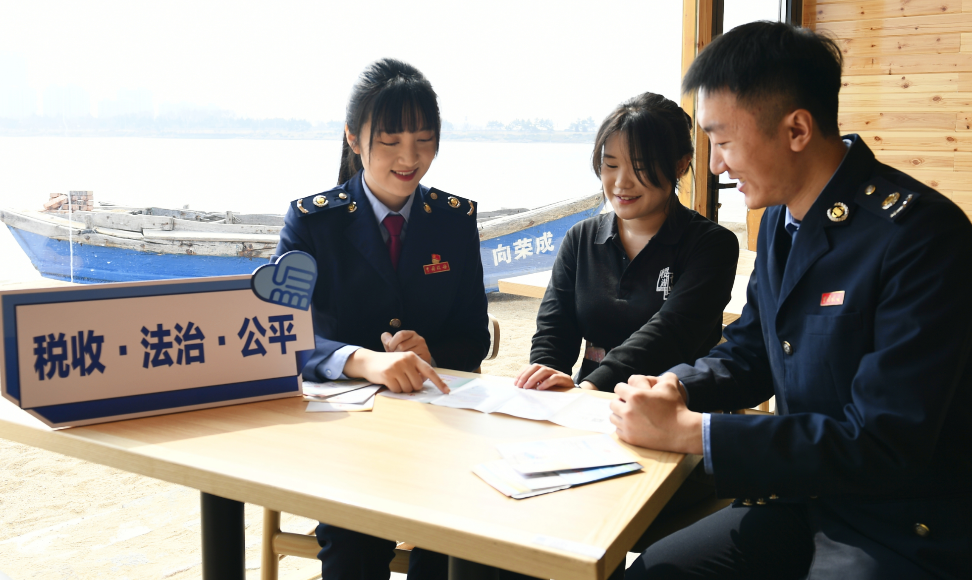 春日赏烂漫樱花、夏日海边逐浪嬉戏、秋日坐观海天一色、冬日赏天鹅雪景,得天独厚的自然禀赋与四季分明的诗意景致,共同托起威海荣成特色鲜明、活力迸发的文旅产业,也催生了星罗棋布的民宿、特色鲜明的餐饮、活力四射的商圈。随着第35个全国税收宣传月的帷幕正式拉开,一抹鲜亮的“税务蓝”穿梭在景区与商户之间,成为山海间一道独特风景线。