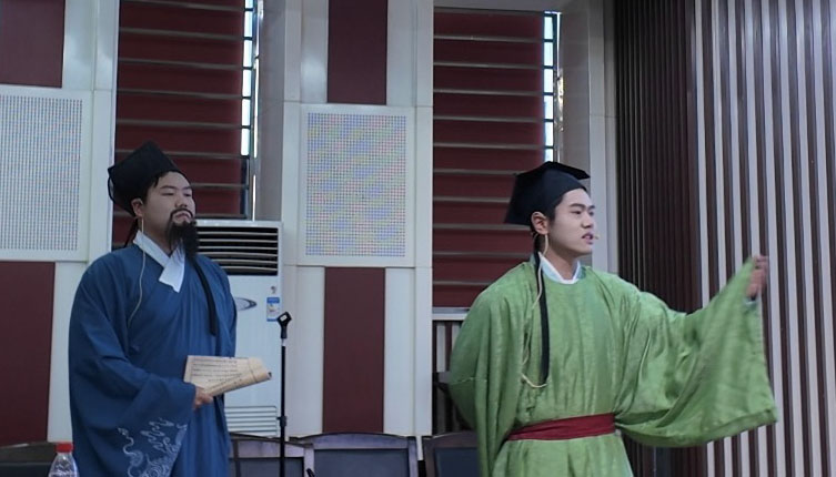 比赛现场,参赛队伍身着汉服、民族服装或者礼服,或吟诵《岳阳楼记》的千古名句“先天下之忧而忧,后天下之乐而乐”,或以“尺规绘山河,以匠心筑家国”的铮铮誓言,将专业抱负融入《请党放心 强国有我》的青春告白之中。有的化身《大山的女儿》黄文秀,铿锵讲出“扶贫之路,对我而言,更像是心中的长征”的坚守与担当,有的以“盛世如愿”为主题,回望先辈披荆斩棘的峥嵘岁月,展现祖国今日繁荣昌盛的景象,用深情朗诵致敬祖国……每一个节目都深深触动着台下师生的心弦,他们有的热泪盈眶,有的轻声跟读。这一刻,书香与热血交融,经典与青春共鸣。