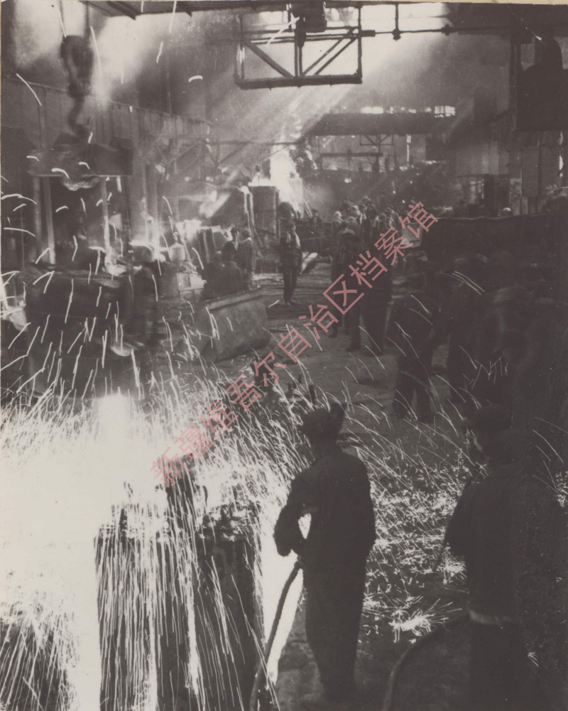 八一钢铁厂工人在生产车间艰苦作业。自治区档案馆供图