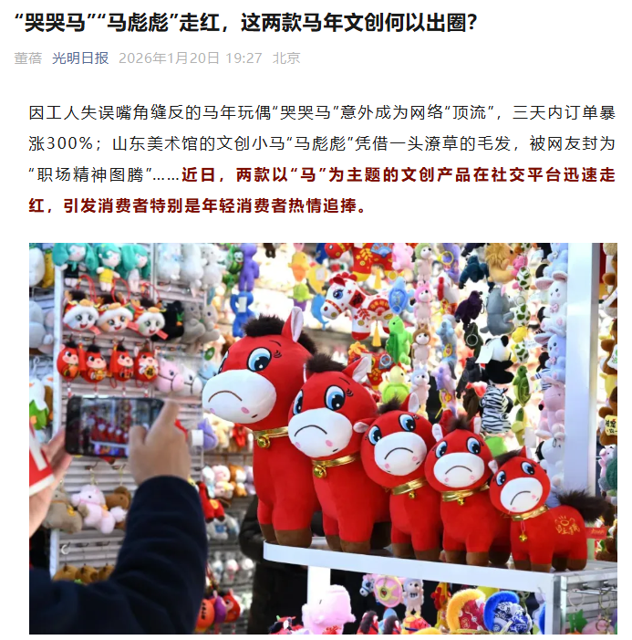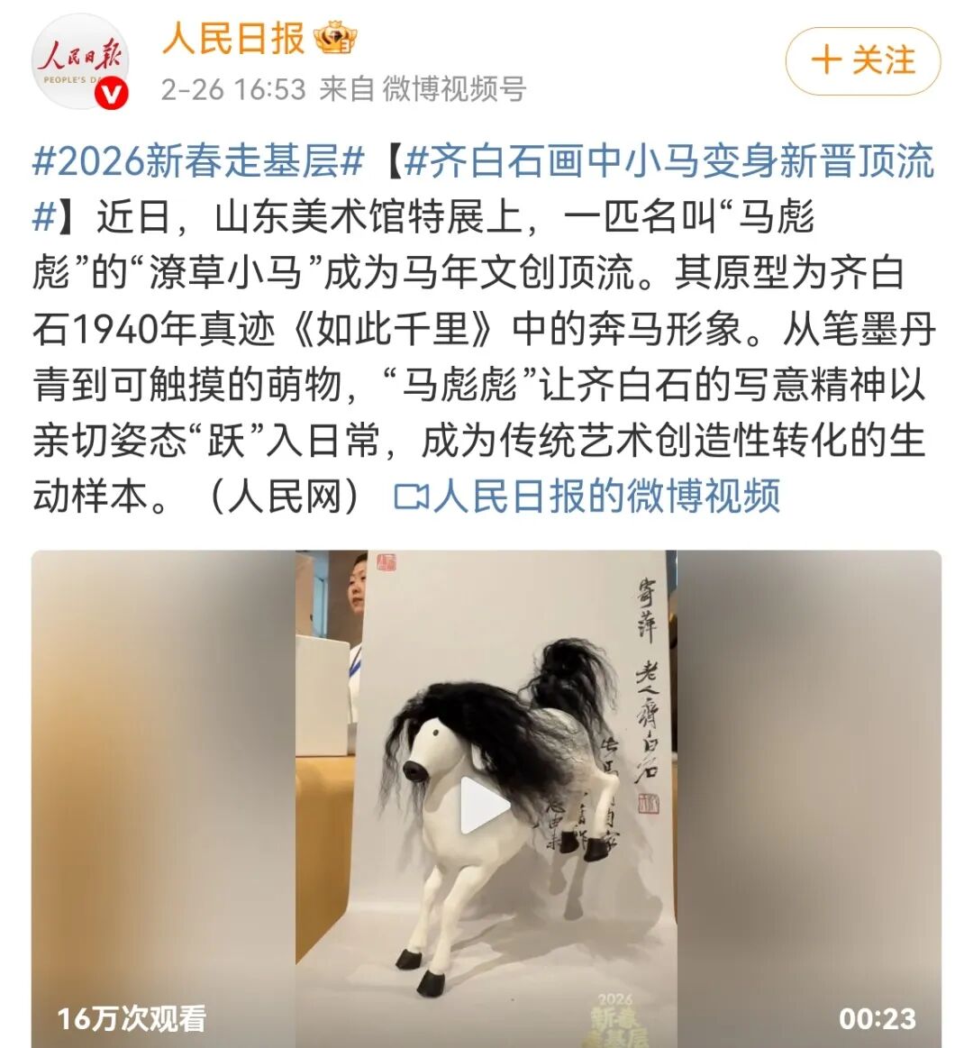 “学我者生”不仅仅是一场展览,它是一次成功的文化实践。北京画院与山东美术馆携手山东省旅游推广中心等多方力量开发的400余款文创产品,巧妙提取齐白石作品中的艺术元素,实现了审美与实用的结合,销量非常可观。其中,以齐白石的《十二属图之如此千里》为原型,以淄博软陶技艺呈现的“马彪彪”更是火爆出圈,成为展览最受欢迎的符号之一,生动诠释了文化IP深度开发的产业价值与社会效益。