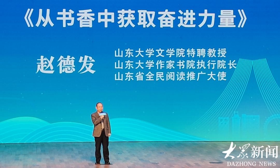 赵德发表示,作为山东省全民阅读推广大使,与大家一同开启一场浸润心灵、滋养文明的阅读之旅,内心满是荣幸与热忱。阅读从来都是流淌在中华民族血脉中的文化基因,更是山东人刻在骨子里的精神追求。从孔子研究《易经》韦编三绝,到如今普通人的数字阅读,阅读的载体在变,但人们对知识的渴望、对智慧的追求从未改变。作为一名作家,赵德发深耕文学园地数十载,认为阅读是最方便的教育,是最深刻的修行,它能让人们在方寸书页间,领略山河壮阔、体悟人生真谛,也能让大家在墨香浸润中涵养心性、增长才干。