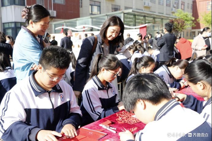 活动现场,与会人员先后观摩聊城七中常规管理与学生作品展示、分学科课堂教学及评课交流,观看“一校一品”学生素养展演,直观感受学校差异化教学在课堂落地、课程建设、素养培育等方面的实践成果。