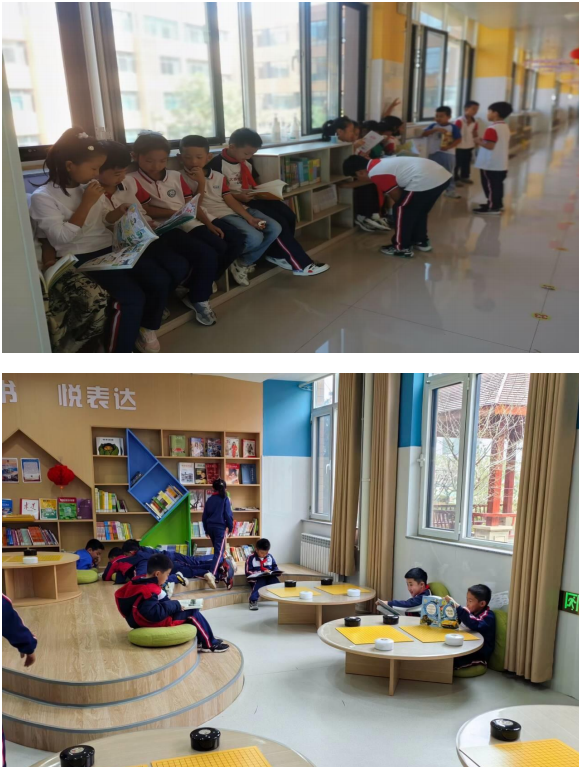 我校以“山之沉稳育静心读者,水之灵动养书香少年”为设计思路,打造传统与智慧融合、三级联动的阅读空间,让校园处处可读书、时时能诵读。