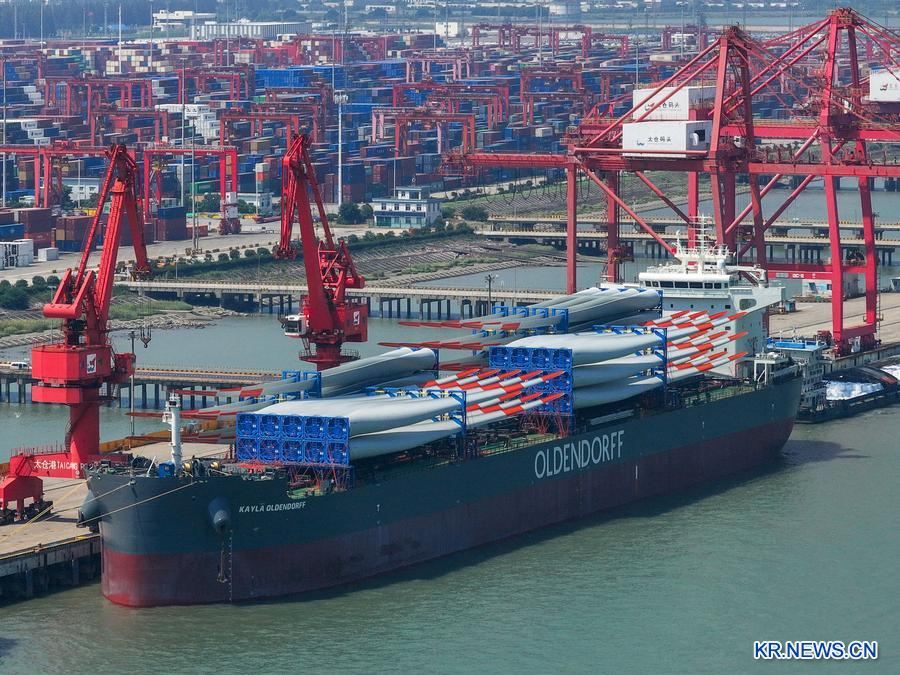 지난해 9월 16일 화물선이 장쑤성 타이창(太倉)항 부두에 접안한 모습을 드론 사진에 담았다. (사진/신화통신)