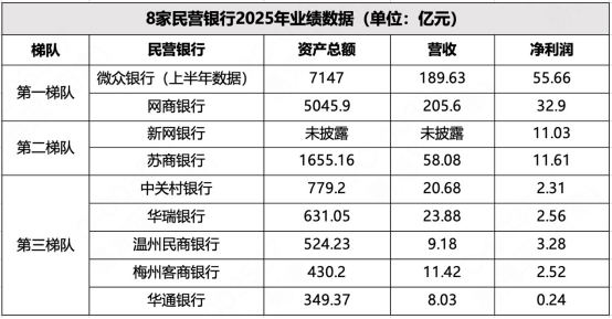 民营银行2025年成绩单:互联网“双雄”持续领跑,中尾部承压中寻突围