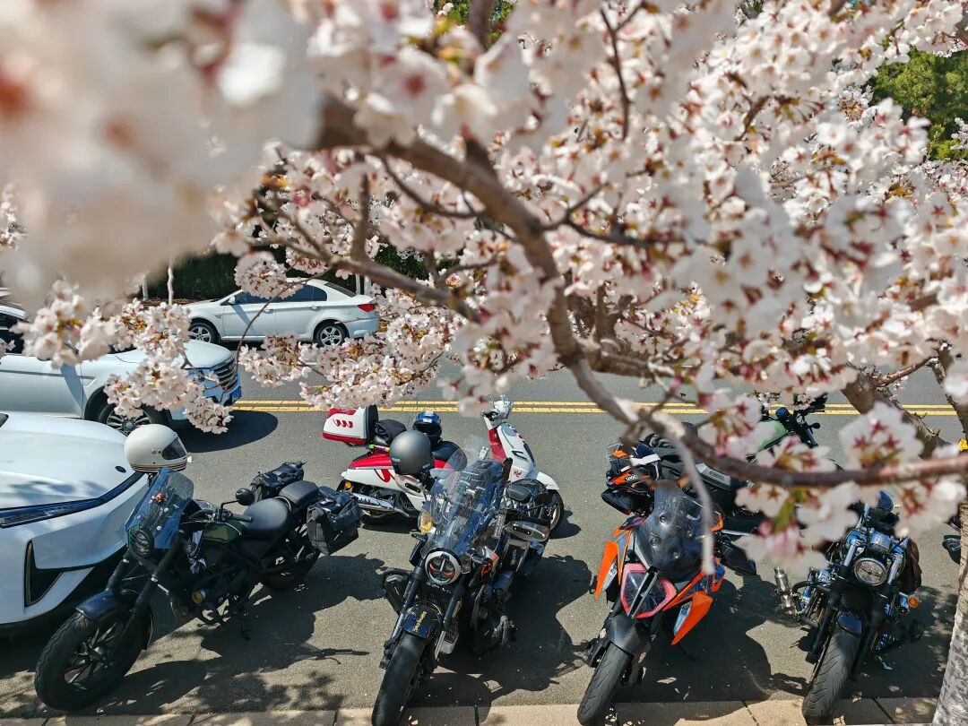 硬朗的机车与柔美的樱花交相辉映,碰撞出视觉与听觉的双重震撼。