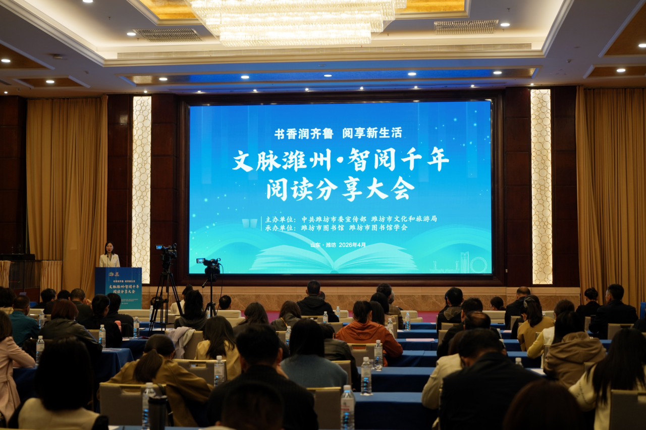4月23日,在2026“潍有书香”全民阅读系列活动期间,由中共潍坊市委宣传部、潍坊市文化和旅游局主办,潍坊市图书馆、潍坊市图书馆学会承办的“文脉潍州·智阅千年”阅读分享大会成功举办。本次活动旨在通过“书香+文旅+科技”的创新融合,以“读、行、看、听”的立体化方式,加强古籍活化利用,让文化在传承中焕发新生,为全市高质量发展注入浓厚的文化动能。