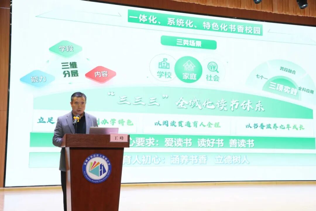 张店区齐盛学校书记王峰以《秉读齐志远 翰墨盛芳华》为题,展示了学校将阅读与传统文化、学科教学深度融合的实践成果,彰显了中学阶段以阅读深耕素养、以思辨涵养品格的育人特色。