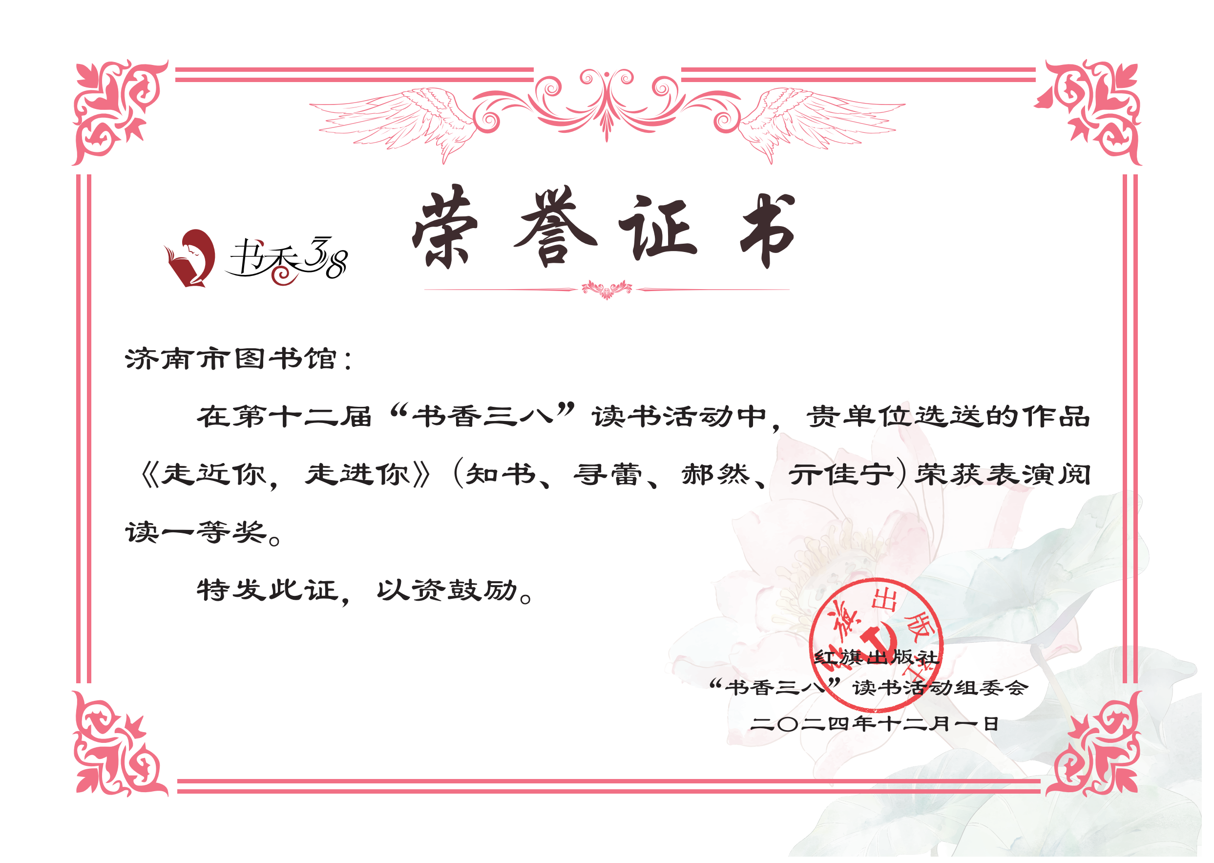 目前,这首歌荣获济南市图书馆和泉城书房主题歌曲征集活动“采用奖”、济南市总工会新媒体作品歌曲类二等奖、全国第十二届“书香三八”读书活动表演阅读歌曲类一等奖。