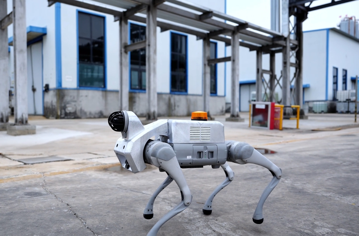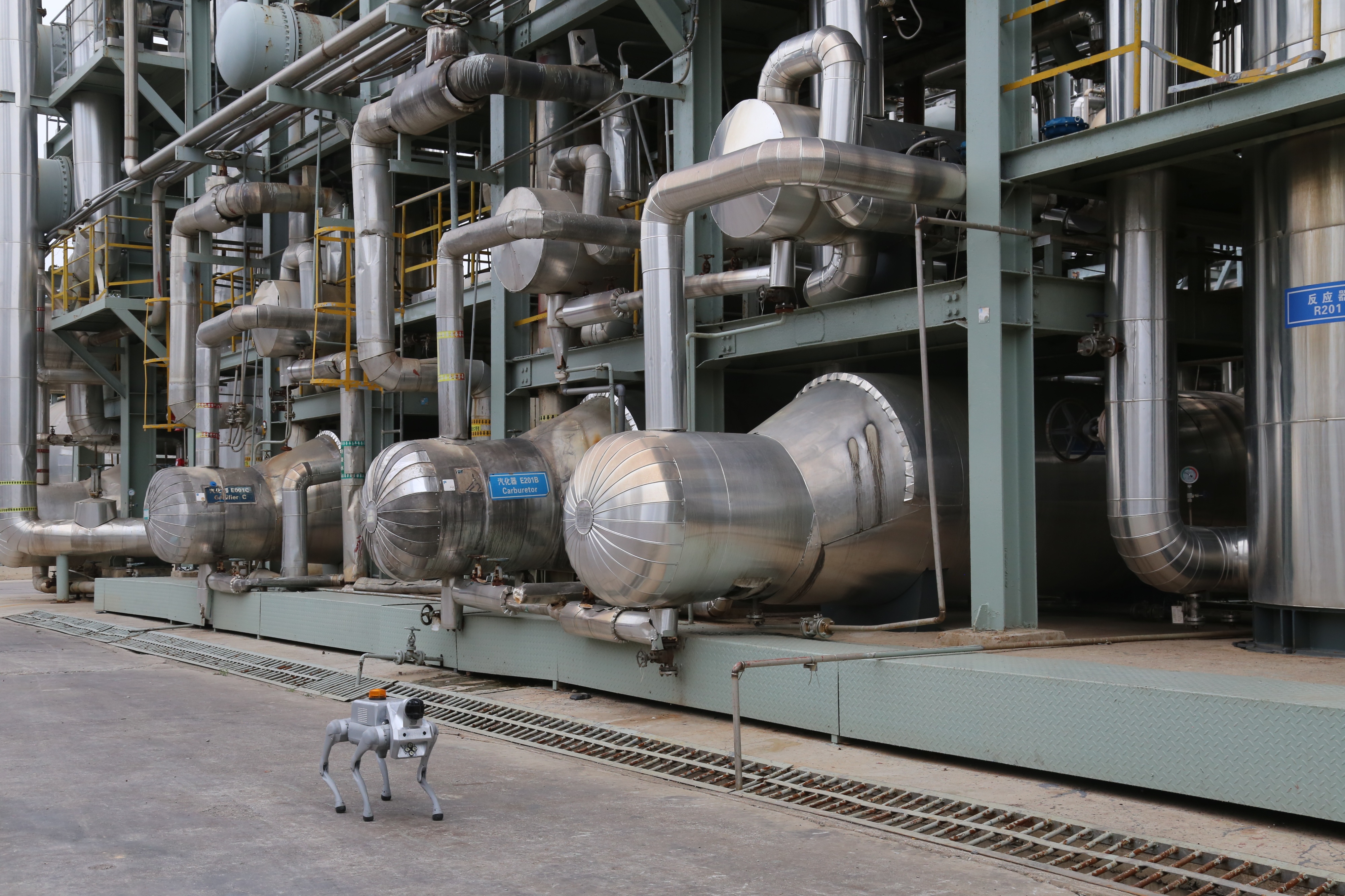 在山东达民化工股份有限公司的厂区里,一台四足机器人正不知疲惫地四处巡视。所到之处,工人有没有佩戴安全头盔、有没有系安全绳,哪里有一丁点的气体泄漏或火苗出现,都逃不过它的“火眼金睛”。