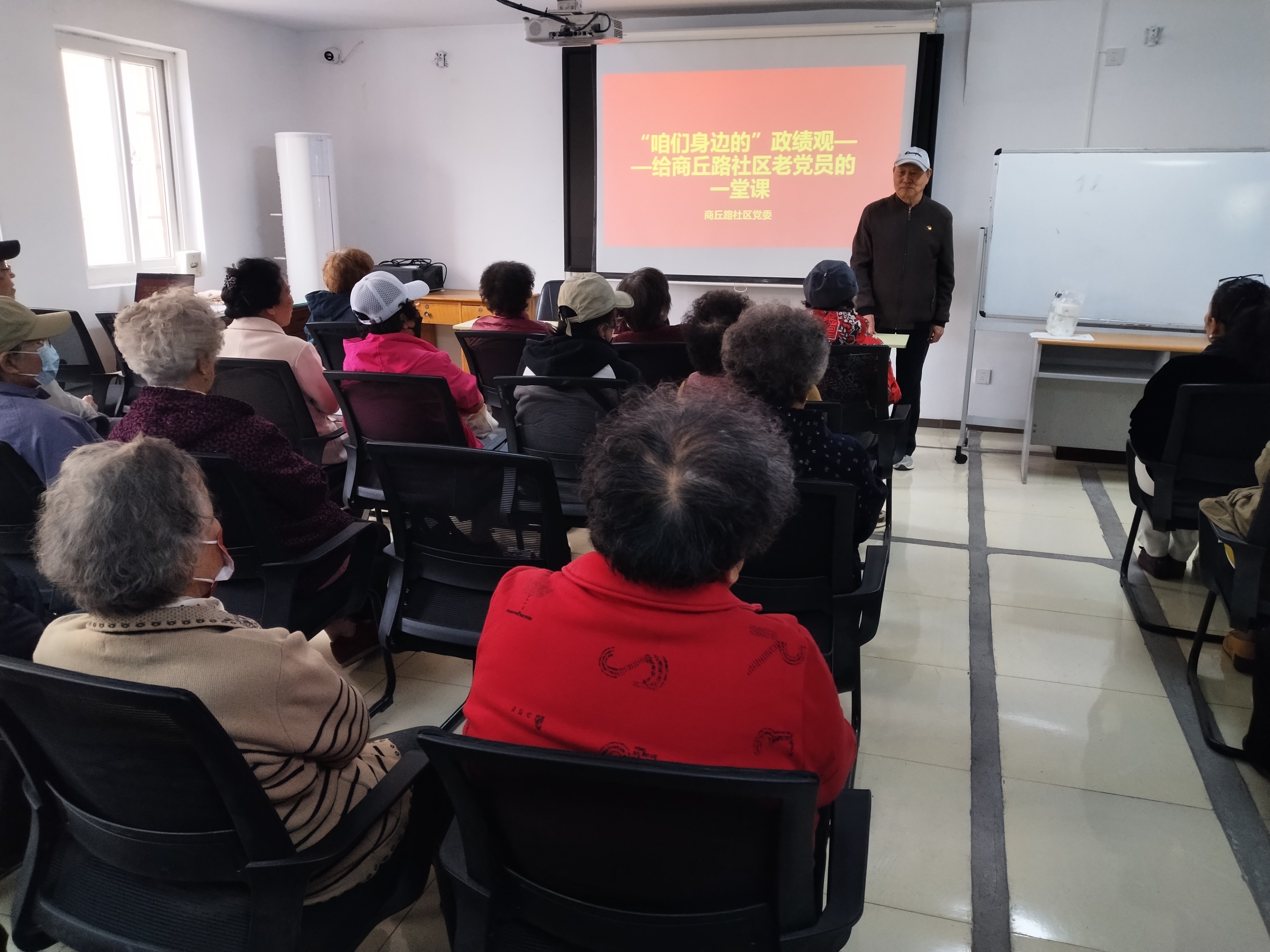 为扎实开展树立和践行正确政绩观学习教育,强化党建引领基层治理效能,传承老党员初心使命,凝聚社区奋进力量,近日,青岛市市北区洛阳路街道商丘路社区党委精心组织开展“咱们身边的政绩观——给商丘路社区老党员的一堂党课”主题党日。社区特邀老党员金成训讲授专题党课,社区全体党员、入党积极分子齐聚党群服务中心,在老党员的深情讲述中感悟初心使命,在鲜活案例中校准干事方向,接受了一场深刻的思想淬炼与党性洗礼,推动正确政绩观在基层落地生根。