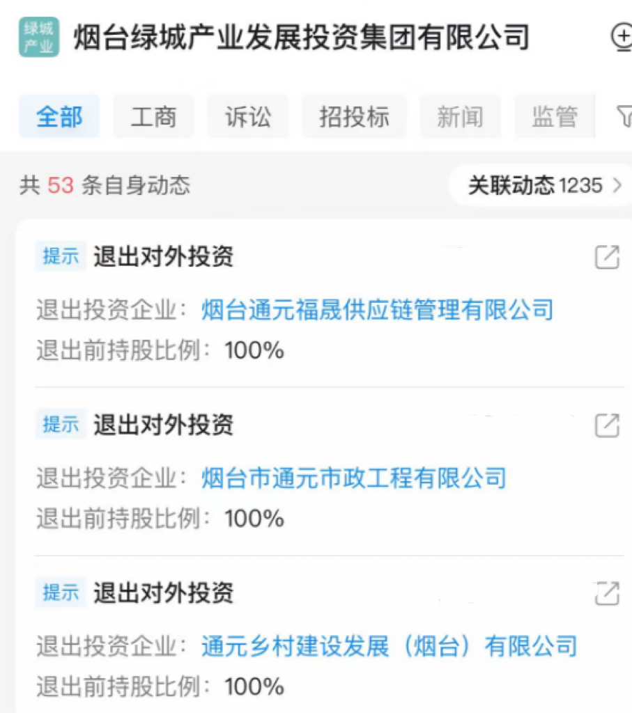 企查查显示,近日,烟台绿城产业发展投资集团有限公司(下称“烟台绿城产投集团”)将持有的烟台通元福晟供应链管理有限公司、烟台市通元市政工程有限公司、通元乡村建设发展(烟台)有限公司100%股权全部转出。上述股权由烟台市福山区国有控股集团有限公司(下称 “福山区国有控股集团”)承接,实现直接控股。