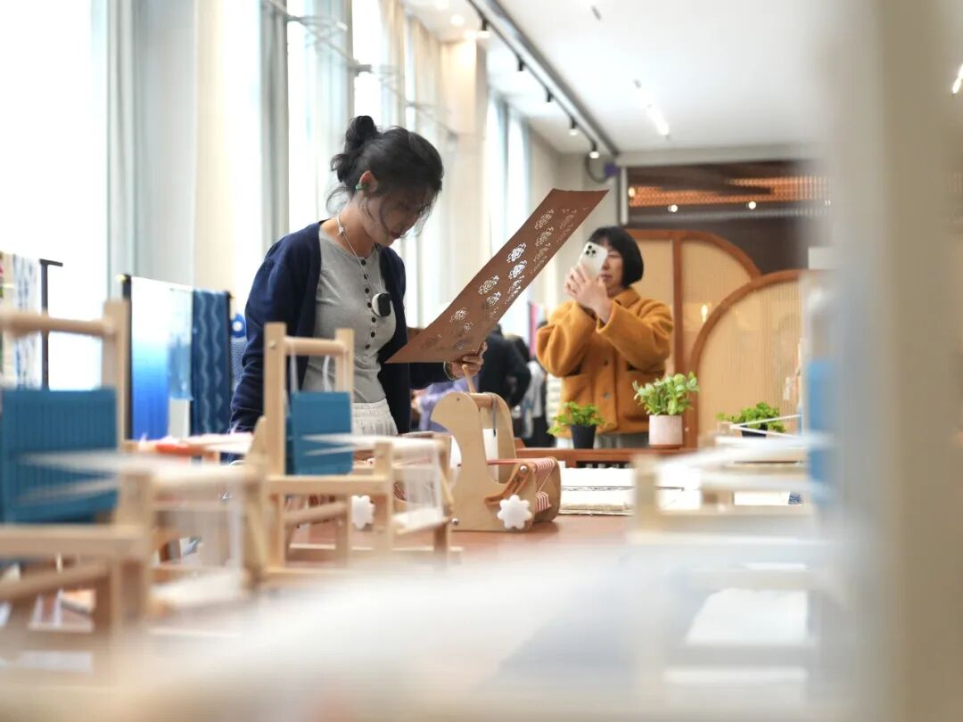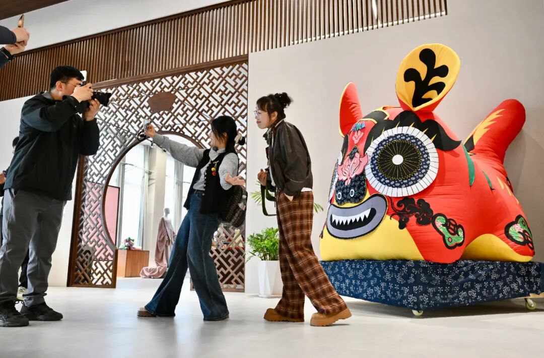 博兴老粗布非遗展厅里,嘉宾与巨型布老虎打卡互动,传统 IP 让老手艺焕发青春活力。