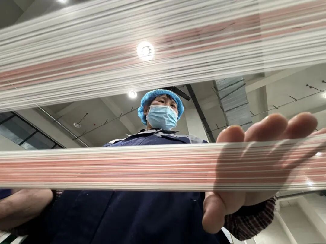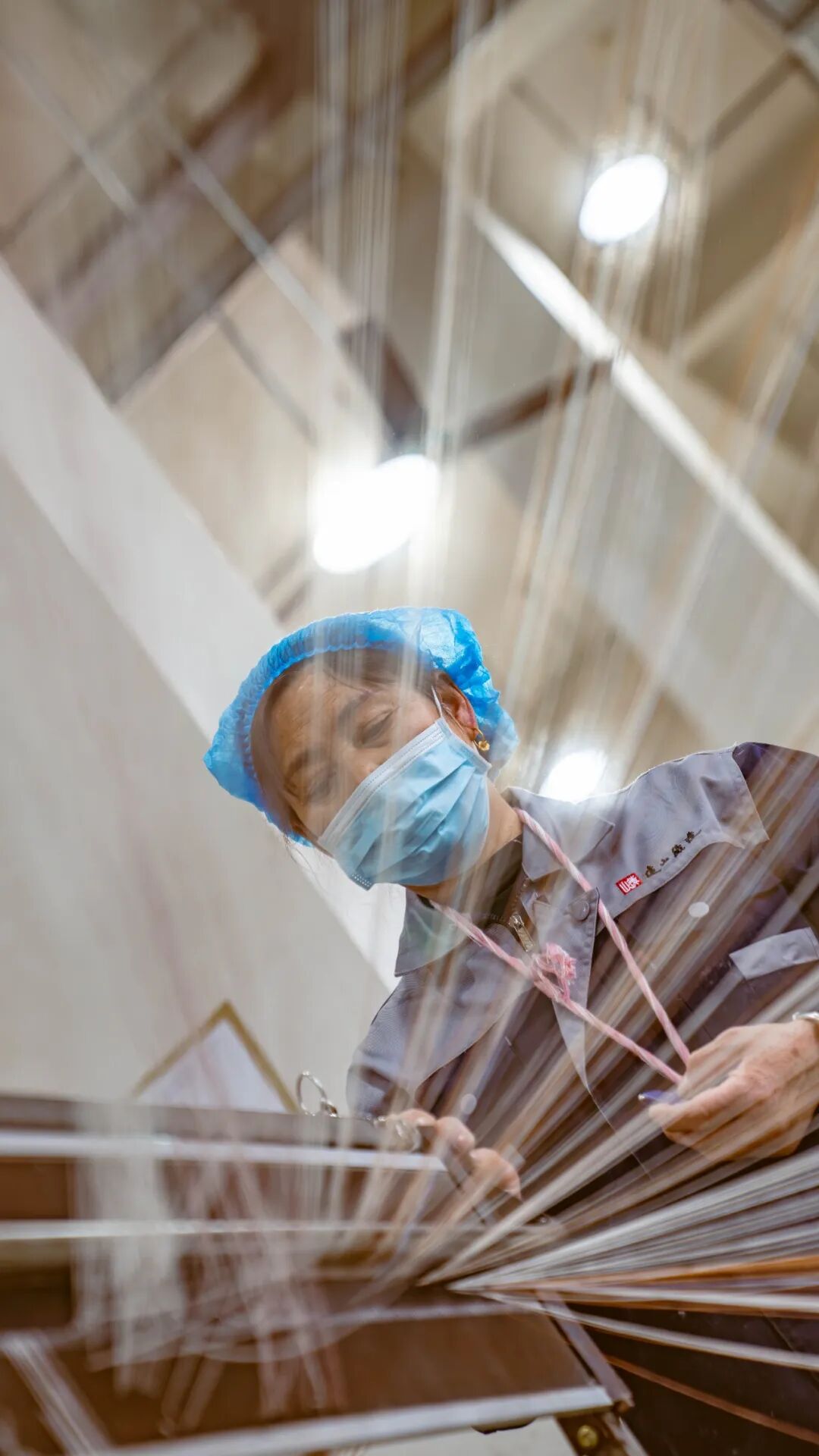 透过层层丝线,我们看见织工的专注神情,这是老粗布从线到布的关键一步,每一个细节都承载着她的经验与匠心。