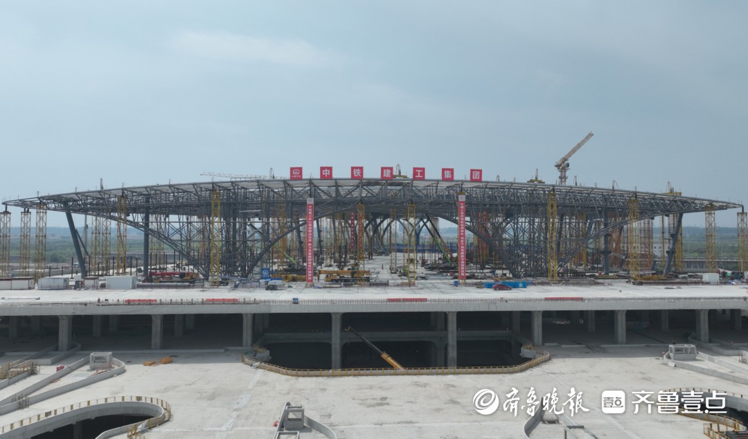 捷报!中铁建工东营南站项目津潍场及侧式站房钢结构全部提升完成