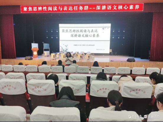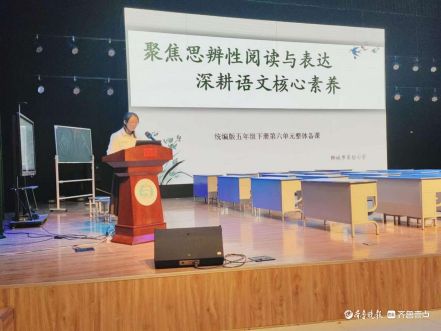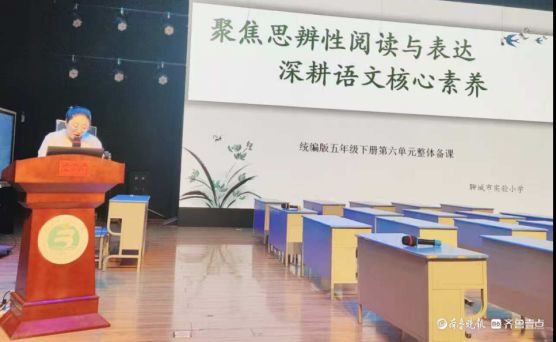 本次教研以“聚焦思辨性阅读与表达任务群——深耕语文核心素养”为主题,紧扣五年级下册语文第六单元内容展开。活动伊始,聊城市实验小学五年级语文组孙婷婷老师对本单元整体教学设计进行深度解读,立足核心素养,明晰单元目标、内容结构与教学逻辑,为后续课例展示奠定坚实基础。