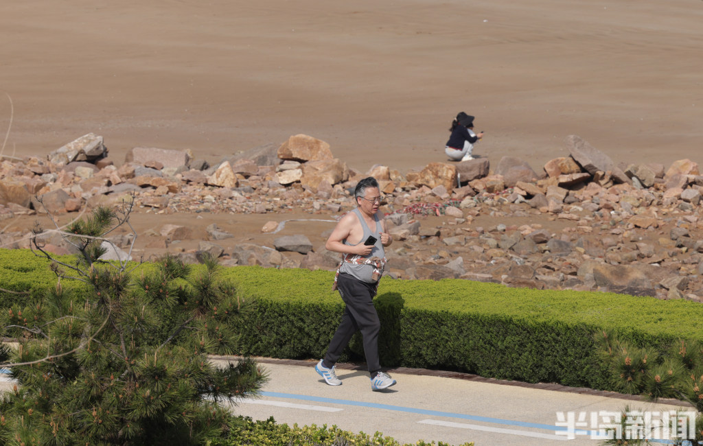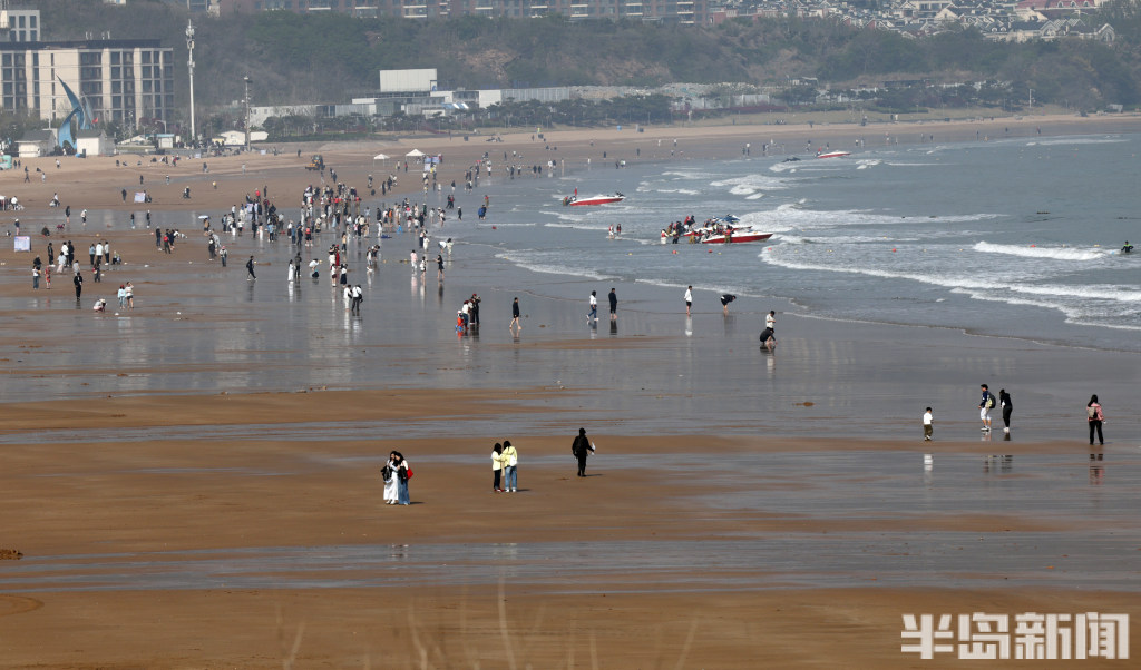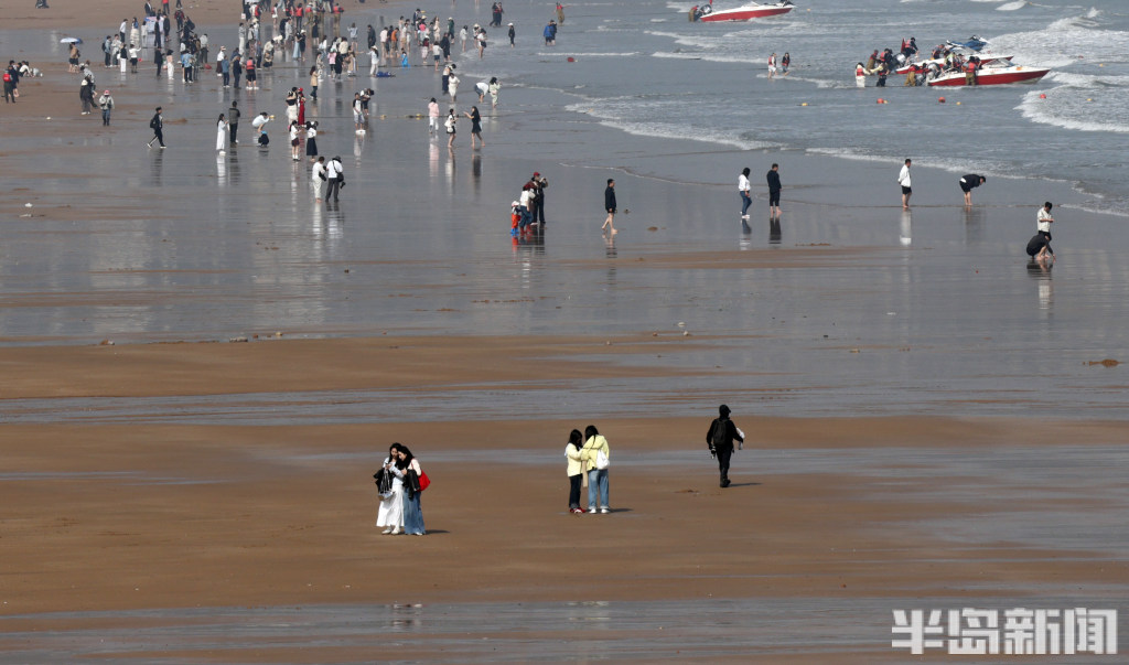 4月23日,青岛石老人海水浴场晴空万里,沿海一线视野通透、能见度极佳。不少游客卷起裤脚,光着脚丫漫步沙滩上,任由清凉的海水漫过脚面,惬意十足。当日天气晴好,市区最高气温24℃,让人提前感受到了初夏的清新与舒爽。(半岛全媒体记者何毅)