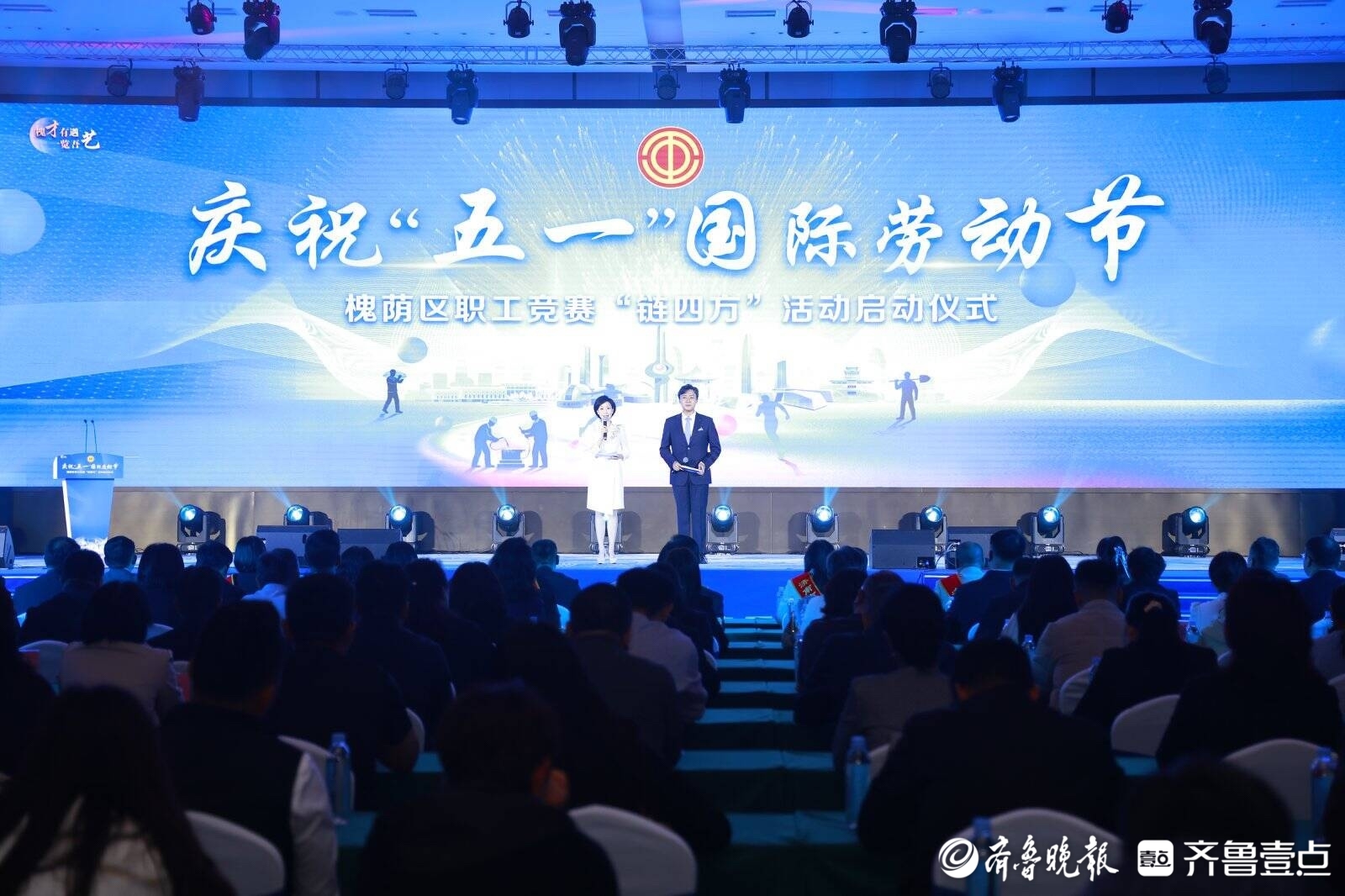 4月22日上午,槐荫区庆祝“五一”国际劳动节暨职工竞赛“链四方”活动启动仪式在绿地·齐鲁之门京沪会客厅举行。