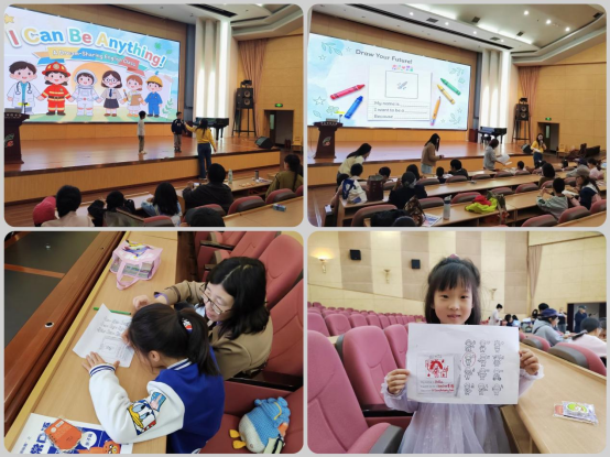 4月18日上午,青岛市图书馆在报告厅开展春日共读‘英语绘本魔法秀’双语阅读启蒙活动,深受亲子家庭喜爱。活动中,老师以职业词汇为切入点,将趣味游戏融入单词教学,让孩子在欢乐互动中理解并记住单词。随后开展亲子职业匹配小游戏,加深孩子记忆,让他们画出梦想职业并朗读展示,在积累词汇的同时全面锻炼口语与表达能力。老师还向家长传授分龄选书三步法,帮助家长科学挑选双语绘本、避免盲目囤书,活动现场气氛热烈,参与家庭纷纷表示收获满满。