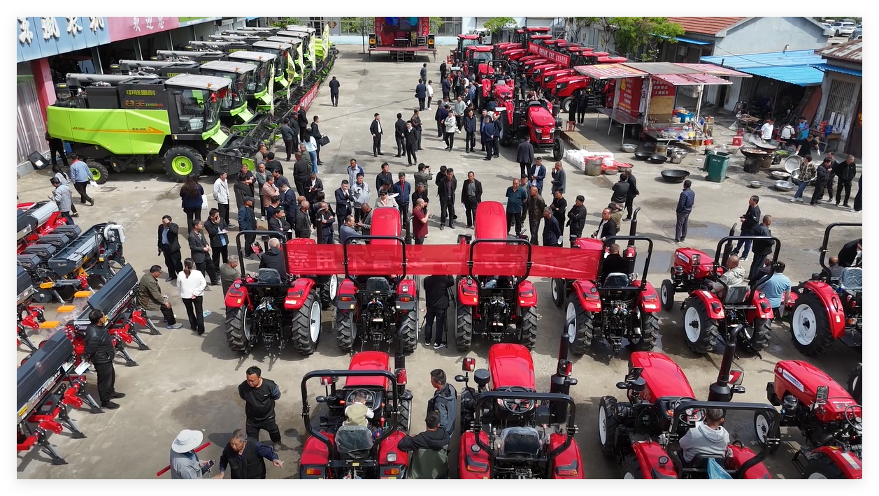 走进郓城县大型农机销售市场,眼前的景象格外热闹:大型拖拉机、高性能播种机、茎穗兼收型收割机等各类农机具琳琅满目、整齐排列,前来看机、试机、订机的农户和种粮大户络绎不绝,销售人员忙着讲解参数、演示操作,洽谈声、机器轰鸣声交织在一起,一派繁忙的春耕备耕图景。