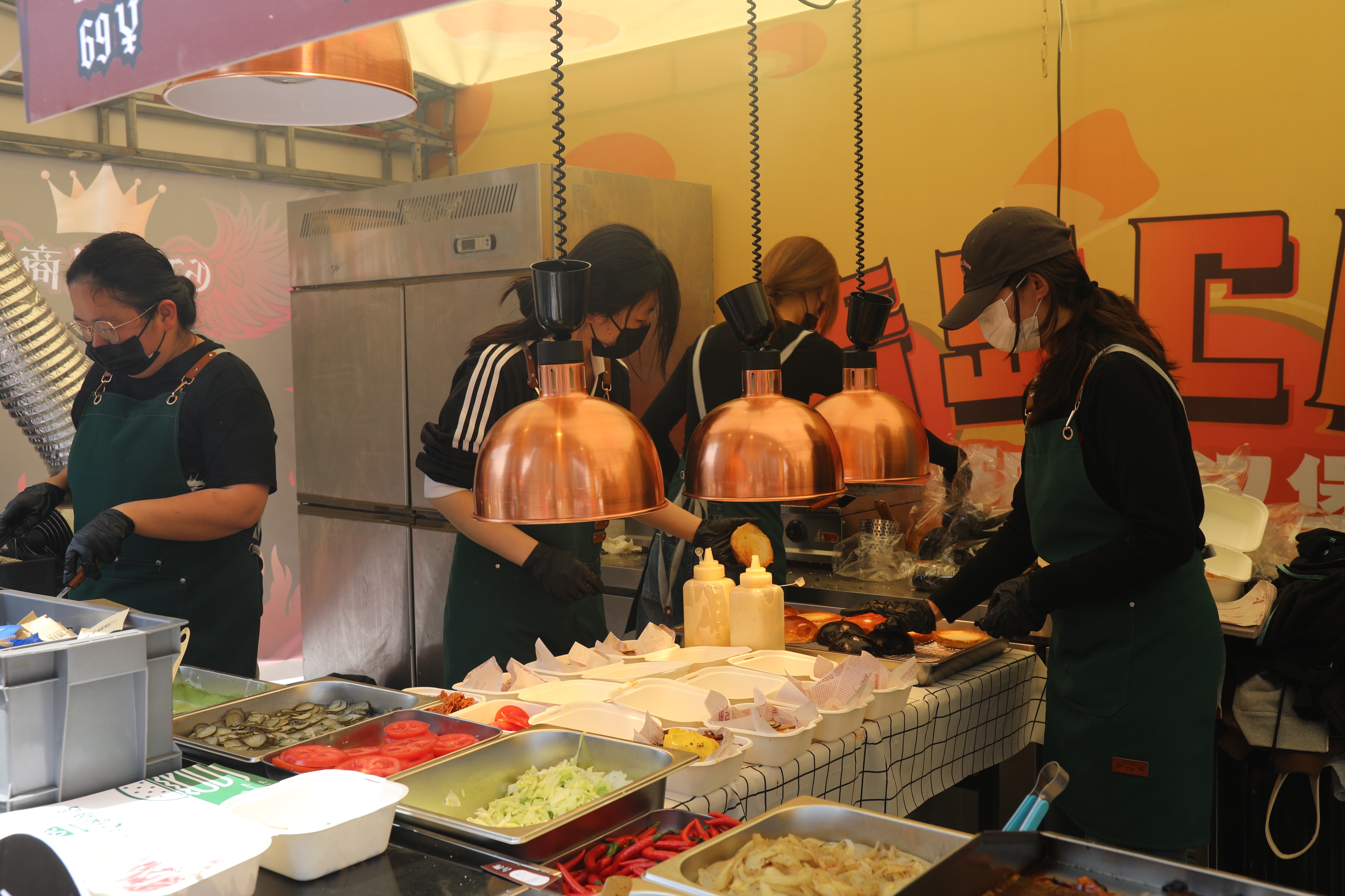 “我们主推的一款汉堡,食材有进口火腿、意大利原切干酪、整颗开心果仁、自制的罗勒青酱,牛肉饼用的是澳洲M5级别。”主理人祁源是一位00后,“我是学院派毕业的,专业是西餐工艺,在酒店干了三年,还是想自己出来闯。”他说,他们从摆摊做起的,慢慢做到夜市、市集,再到全国汉堡节,位于天津的线下汉堡店人气也很旺,遇上像五一这种节假日需要排队。