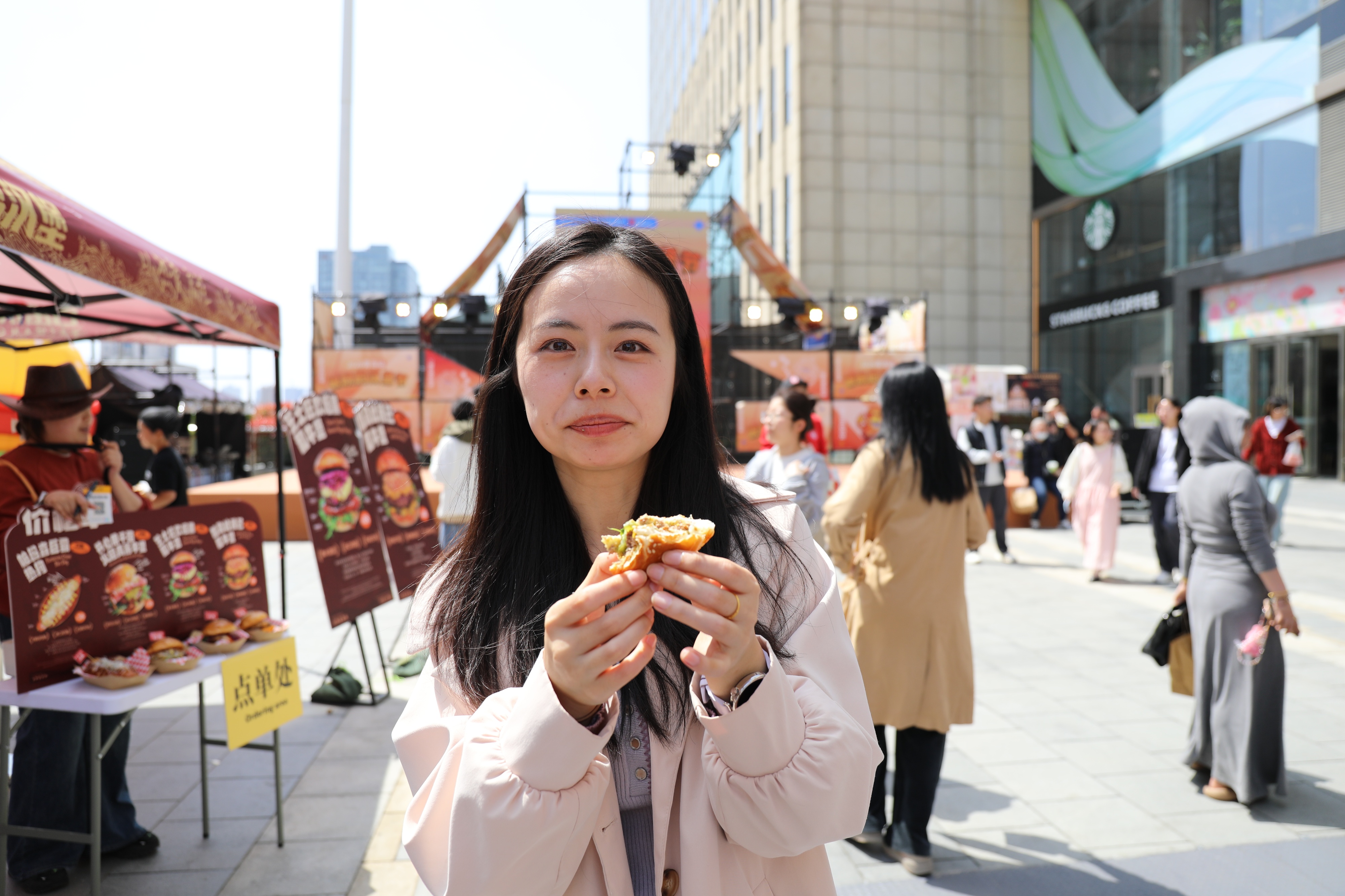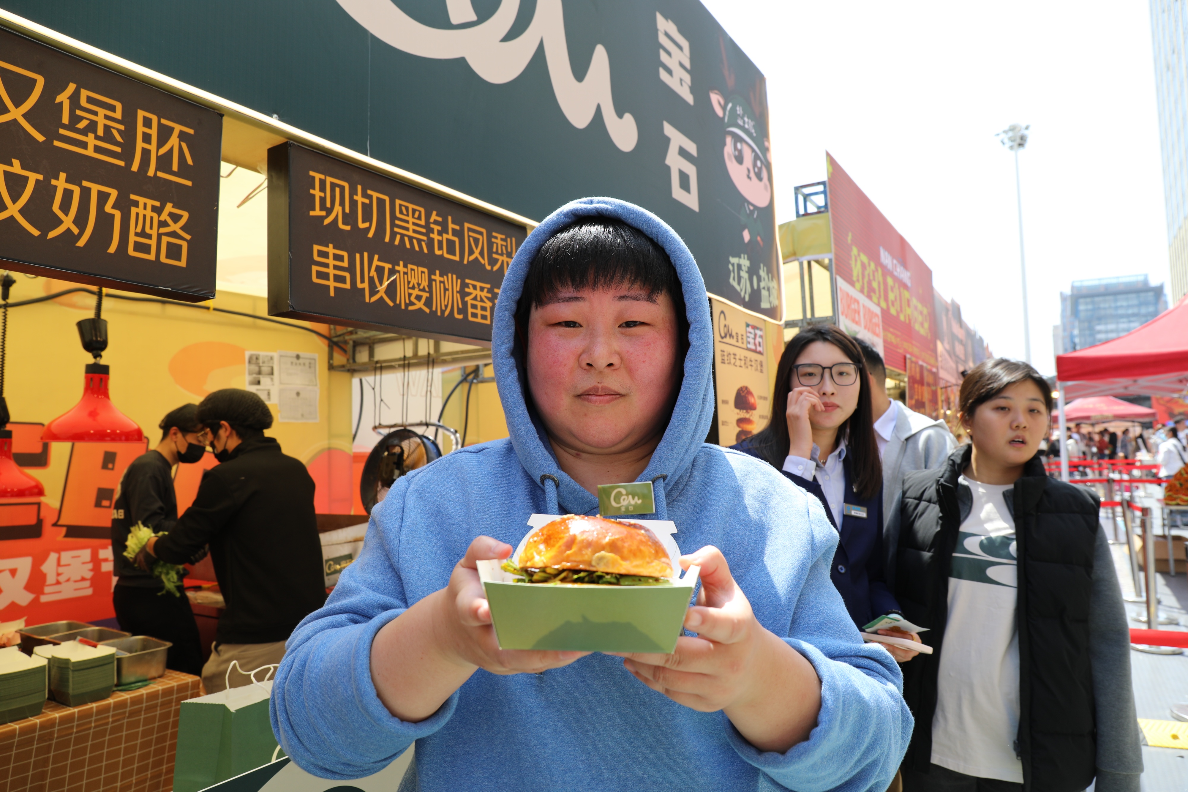 “味道太赞了,成品跟宣传图一模一样。”旁边一位正在排队的本地美食达人张女士一连买了四五个汉堡,“好不容易来了这么多汉堡品牌,来一次得尝个够。”