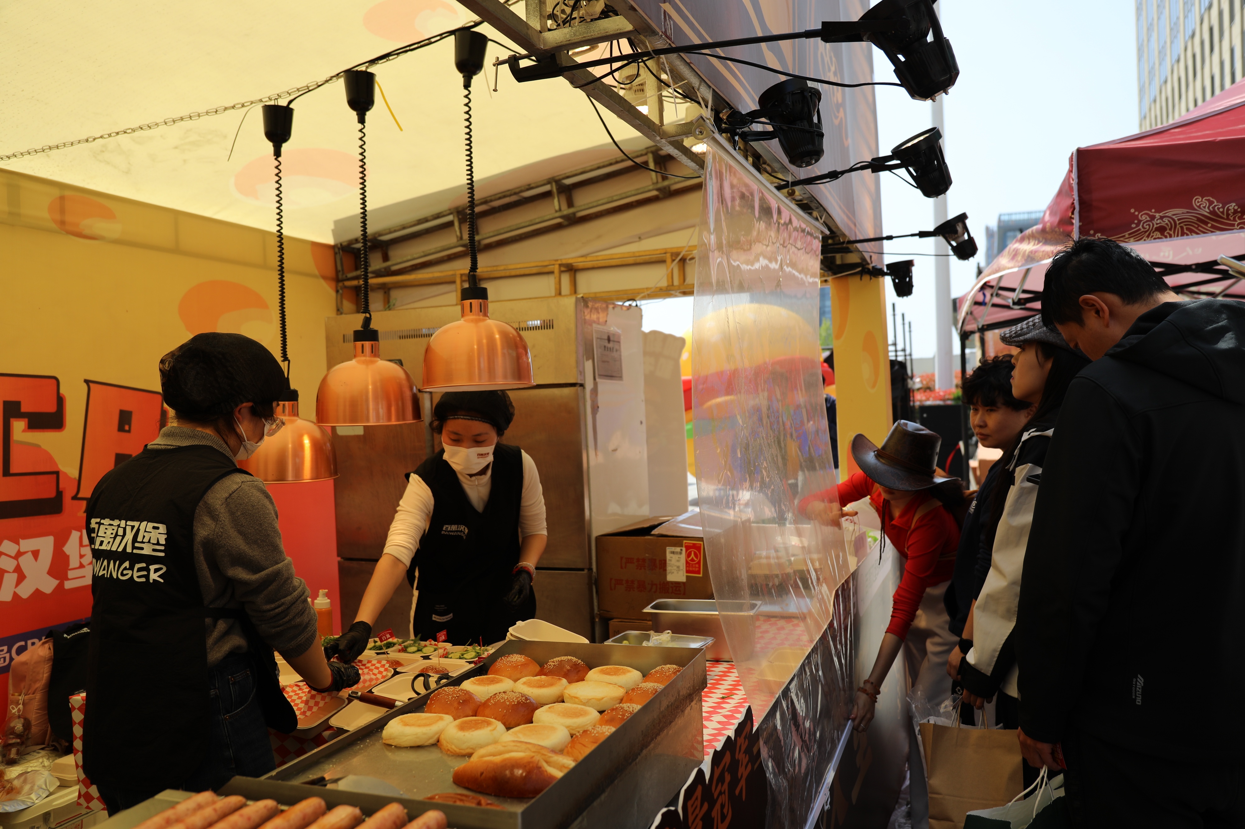 还不到中午,万达广场前已经热闹起来,赶来尝鲜的市民络绎不绝,点单声、叫号声、煎肉声混在一起,烟火气十足。