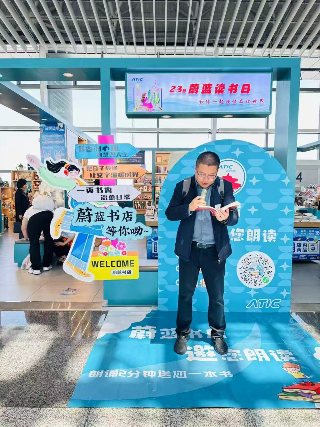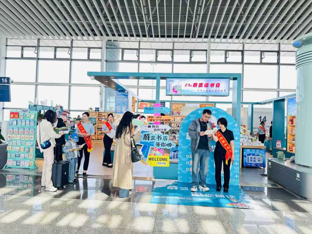 4月23日,世界读书日,青岛机场航站楼内书香弥漫,一场以“朗读2分钟,赠书一本”为主题的创意读书活动吸引众多旅客踊跃参与。