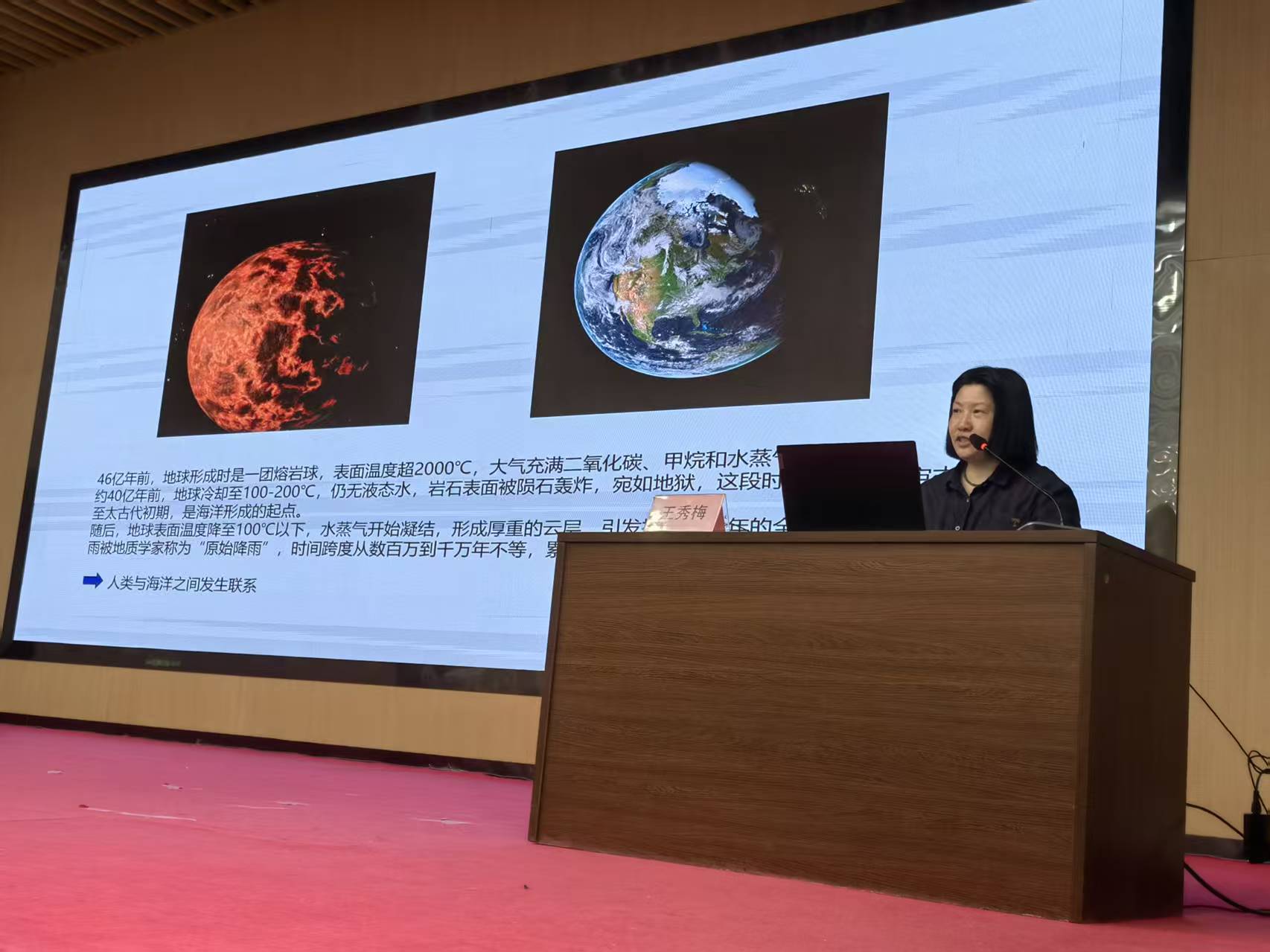 启动仪式结束后,“文明芝罘·美育大讲堂”名家讲座同步开讲。烟台市作家协会主席王秀梅以《文学中的海洋》为题,结合自身深耕文学创作的丰富经验,深度剖析中外文学作品中的海洋元素,深情分享创作心得与实地采风经历。现场还展示了大量海边湿地、鸟类及入海大河的珍贵图文素材,内容详实、见解深刻,引发现场听众强烈共鸣,掌声经久不息。
