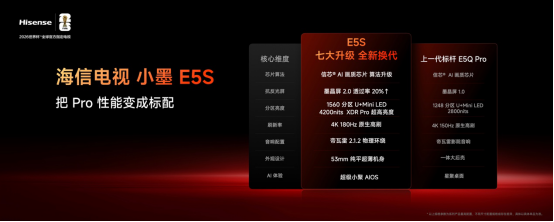 4月22日,海信举行了主题为“好电视的新答案”2026海信电视小墨E5系列新品发布会,正式推出全新一代产品——RGB-Mini LED电视爆款王小墨E5S Pro,以及Mini LED电视口碑王小墨E5S。作为2025年全网销冠的全新进化之作,小墨E5S Pro以革命性的RGB-Mini LED显示技术普及为核心,带来原生色彩、舒适视觉、绿色节能全方位跨代体验;小墨E5S则将过往Pro级的满血配置全面普及为标配,精准解决了传统电视屏幕反光、轻薄机身与好声音矛盾、色彩失真三大核心痛点,重塑Mini LED品质标杆。