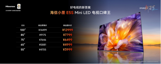 全新一代小墨E5S系列的发布,标志着海信已正式构建起行业内阵容最完备、技术最领先的RGB-Mini LED全明星家族阵列。依托乾照光电在RGB-Mini LED发光芯片领域的硬核实力与海信视像在自研画质芯片、光学显示架构上的深厚积淀,海信已打造出自主可控、完整闭环的RGB-Mini LED全链条技术生态,稳居行业引领地位。小墨E5S Pro的重磅发布,不仅以“新答案”重新定义了好电视的标准,更标志着RGB-Mini LED电视正式走向全民普及。