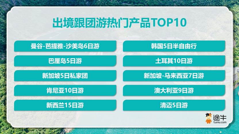 跟团游仍是途牛出境游用户的主流选择之一,但在玩法上呈现“行程做减法、体验做加法”的显著趋势,注重个性灵活、深度体验的跟团游产品成为热门之选。短线方向,“曼谷-芭提雅-沙美岛6日游”“韩国5日半自由行”“新加坡5日私家团”等小团游、半自由行、私家团产品更受青睐,预订热度增长显著。长线方向,跟团行程从传统的“多地连线”转向“一地深度体验”,其中“土耳其10日游”“肯尼亚10日游”“新西兰15日游”等10日以上行程的深度游产品预订热度排名靠前。