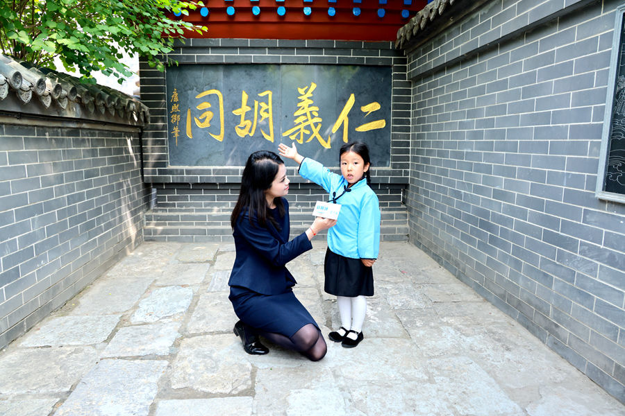 在“小状元志愿者讲故事”环节,刘思琦小朋友化身“小小讲解员”,站在仁义胡同里,为其他小朋友讲解胡同背后的家风故事,成为现场一道独特的风景线。