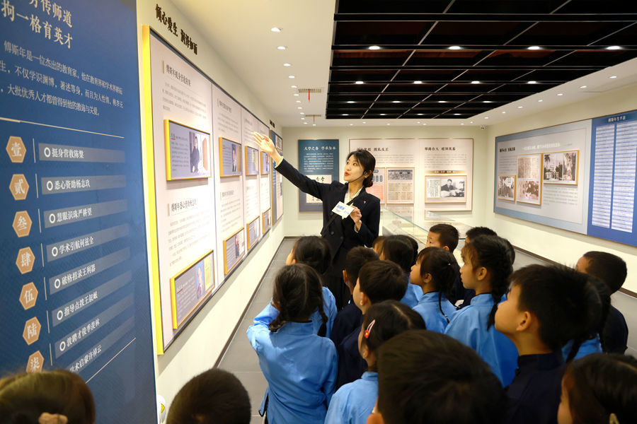 活动进入沉浸式研学体验环节,讲解员带领南湖幼儿园的小朋友们走进傅斯年陈列楼、傅氏祠堂。孩子们认真聆听傅斯年先生的生平事迹,还通过多媒体设备认识甲骨文、参与互动游戏,在趣味探索中解锁传统文化知识。