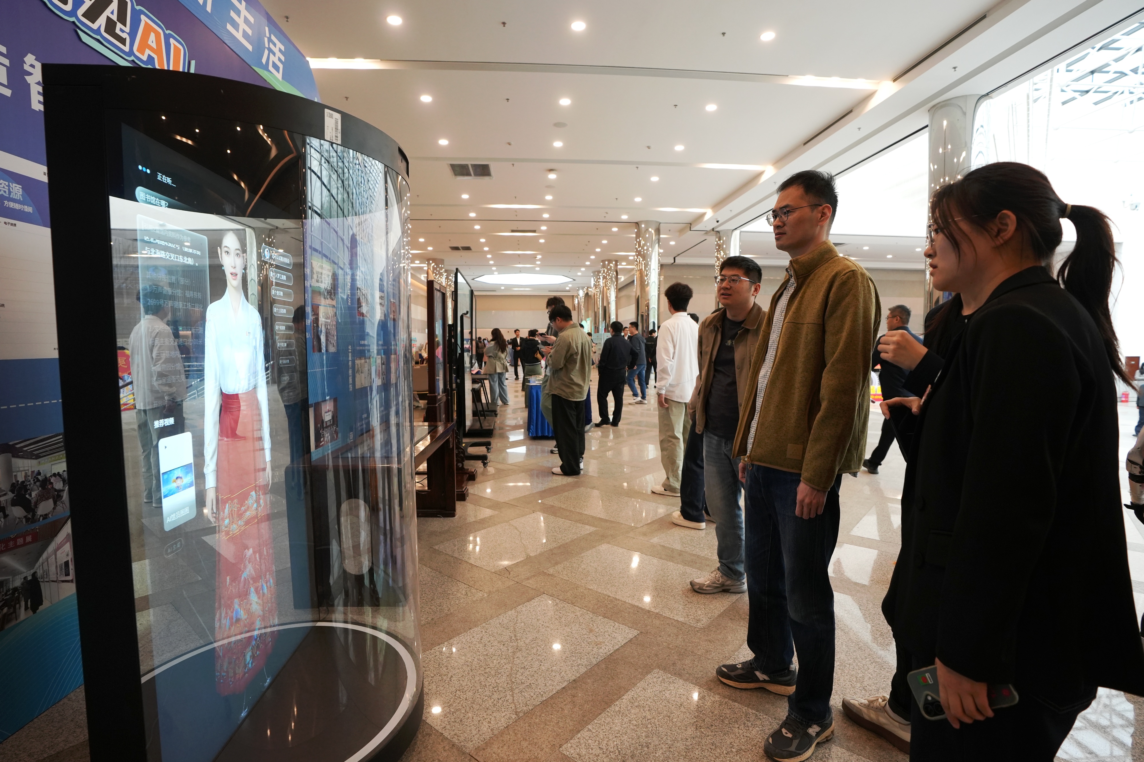 在全民阅读大会会场外,记者看到了一位AI智慧馆员小博,“她”不仅可以帮忙找书,还可以根据读者需求进行个性化荐书,甚至能总结一本书的故事梗概、主题思想。“有任何不懂的都可以在馆内直接找‘她’。”武汉鼎森科技工作人员吴睿告诉记者,他们与多家图书馆、企事业单位及教育机构展开合作,提供畅销报刊在线阅读资源、建设电子阅览室,为智慧图书馆建设提供解决方案。