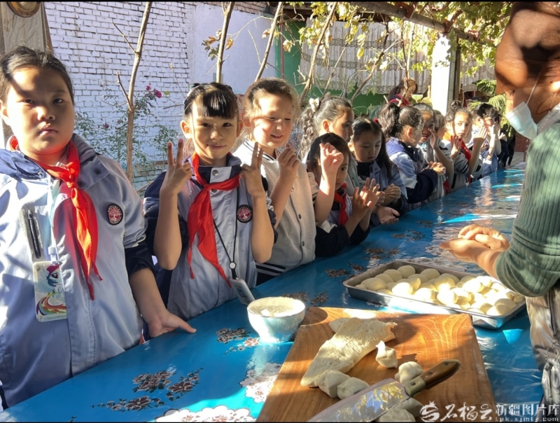 家访点成为沉浸式非遗课堂——在艾德莱斯绸文化课堂上,孩子们系统了解其传统制作技艺,读懂巴旦木、石榴等经典纹样背后的美好寓意;打馕体验中,孩子们亲手完成和面、塑形、印花、烤制等全套工序,在劳动实践中真切感受文化传承的温度。