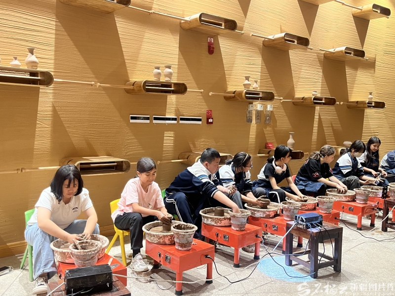喀什市,非遗研学团的青少年体验土陶制作。阿力木江·阿卜杜合力力摄