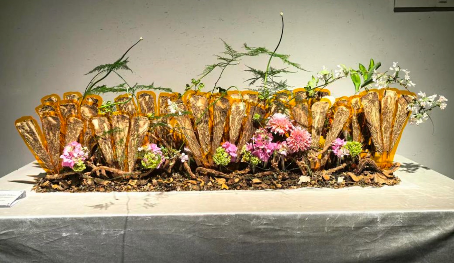 近日,在山东中医药大学的图书馆里,近百种道地药材与应季花木,组成了40个中医药插花作品:当归配千年健,寓意“当归补气血,方得千年健”;黄柏其性寒味苦,亦是古籍防虫之良药,今以形色层入画,层叠似古卷……