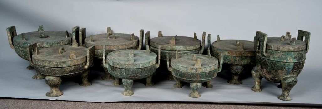 1978年,在鲁南地区的薛国故城出土了一套鼎——春秋青铜附耳蹄足蟠螭纹(铭文)列鼎,这套鼎共有八件。详情>>