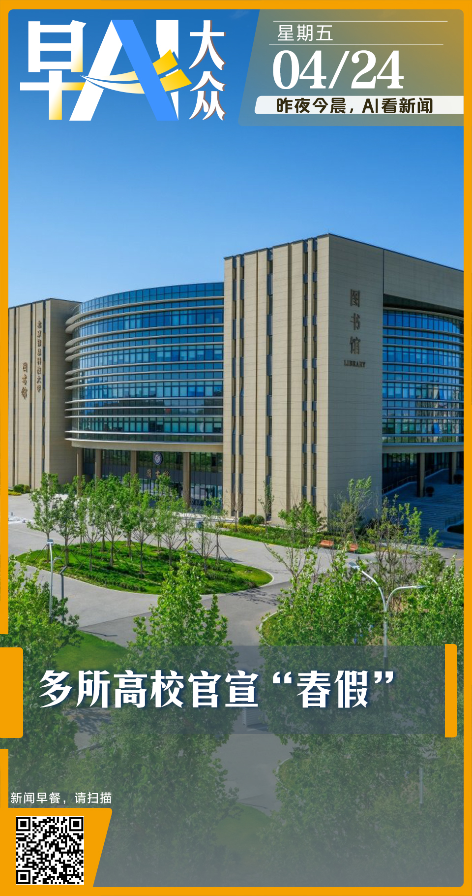 早AI大众|多所高校官宣“春假”;伊朗将恢复往返中国航班